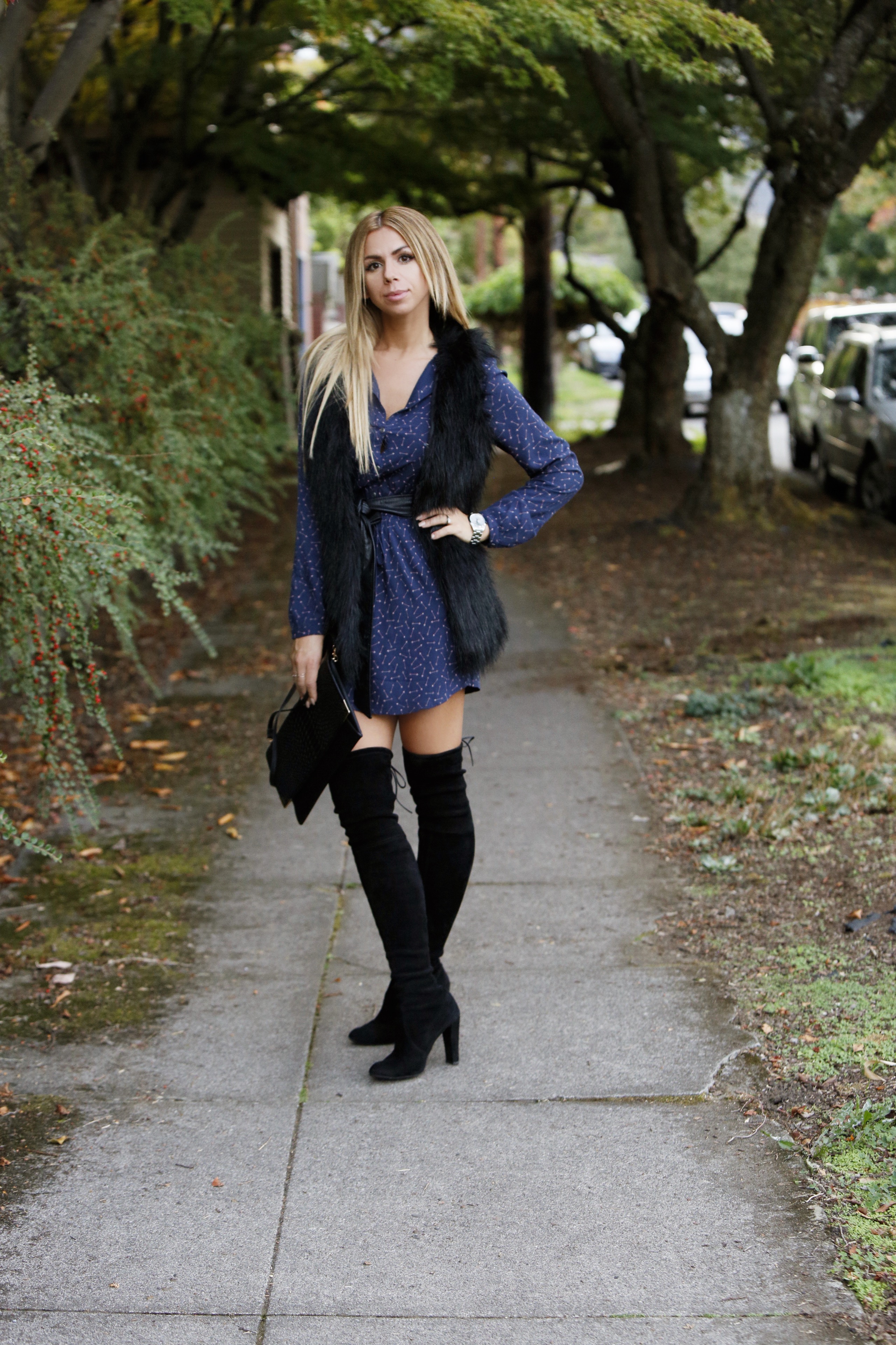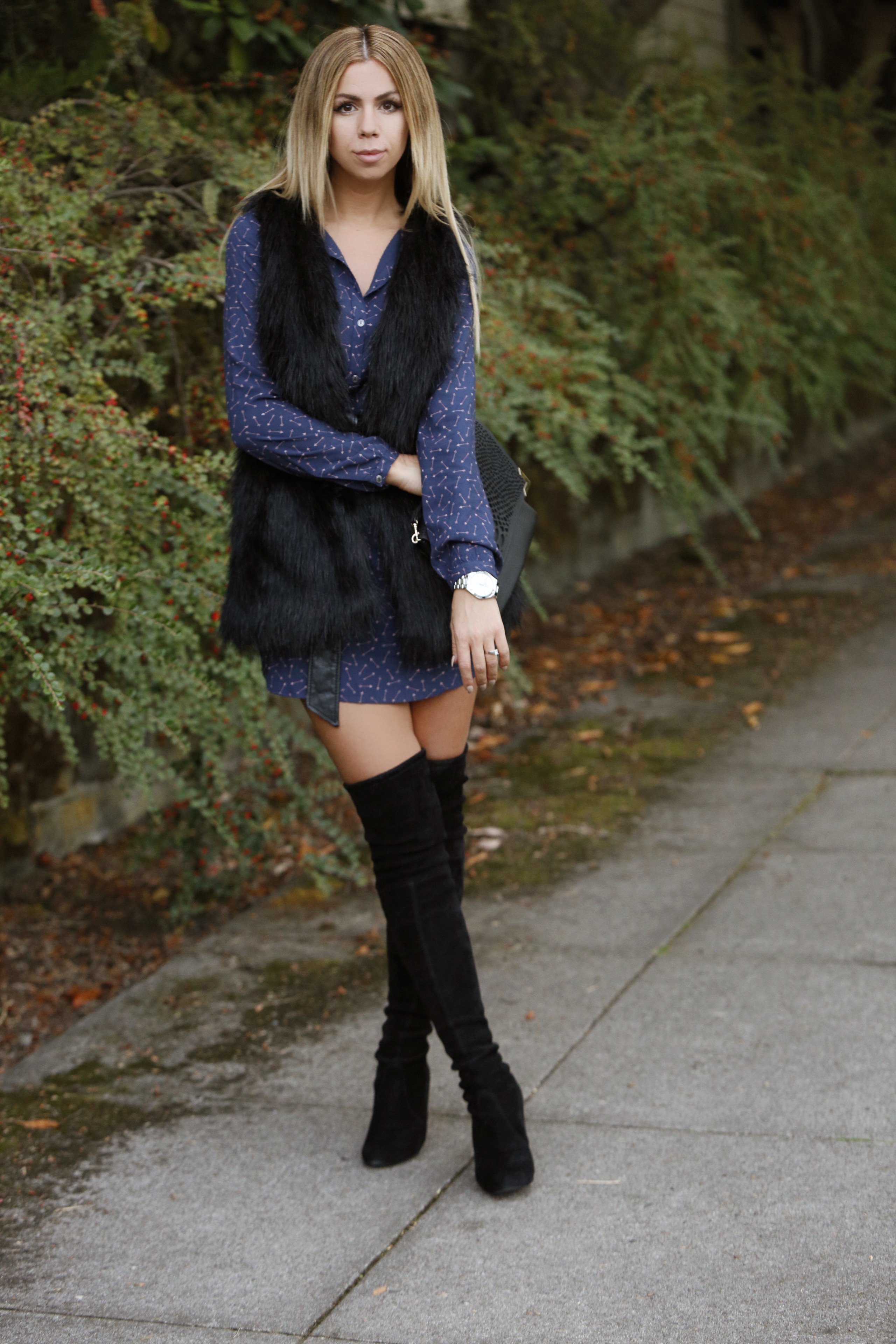 Let’s talk about this look for a bit. My vest has been a go to since I got it last year the key to nailing look you need to be confident in it and loving it! On this overlay dress I layered a soft and furry vest it’s perfect for fall weather, I love this layered look but next time will probably pair it with a boyfriend jeans. It’s a great layering piece that will keep you cozy without suffocating you, and it’s also a nice statement item that will catch the attention of others. I get so many compliments on it and I ❤️It !!
